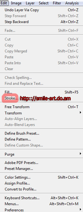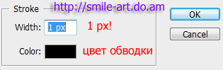 Открываем нашу картинку в Фотошоп. Дублирем слой (Ctrl+J). Идем по пути: Edit-Stroke (Редактирование- Штрих): Вот скрин:  Нажимаем на Stroke. Появляется вот такая штука х) : Устанавливаем такие настройки:  Нажимаем ОК. Вот и всё! Ваша обводка готова, можете использовать ее на аватарах (советую на 100*100 не использовать). Надеюсь все понятно, удачи вам! Все свои вопросы задавайте тут. Внимание! Уроки принадлежит smile-art'y. Копирование запрещено!